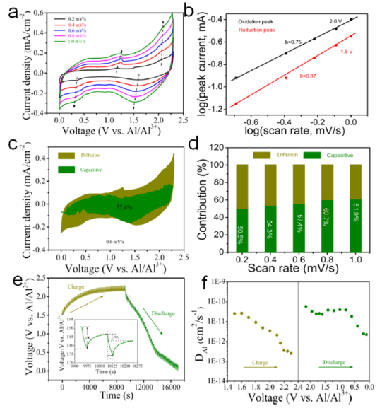 2AlC在鋁電池中的儲能機理和法拉第儲能方法。采用恒流間歇滴定法測定了Al