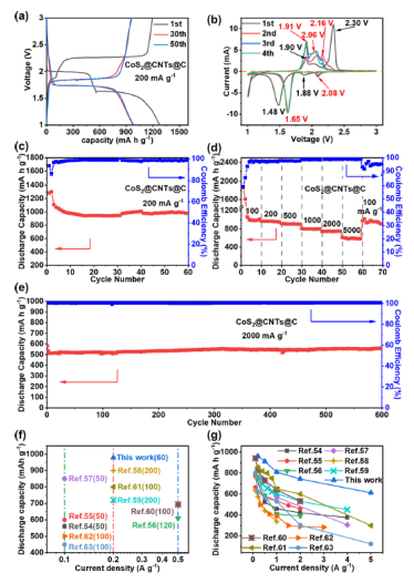 2@CNTs@C在重復儲鋰過程中的導電和結構穩定性。因此,CoS