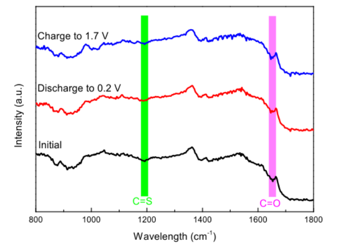 圖8.PQTU陰極在初始、放電后和充電后狀態(tài)下的原位紅外光譜。