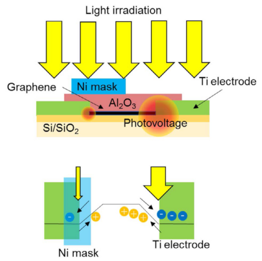 圖3. Ni掩膜石墨烯基光電探測器原理圖及光探測機(jī)理。