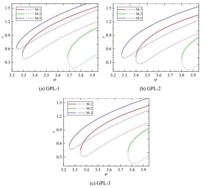 圖18. 不同GPL時次諧波共振力響應曲線。
