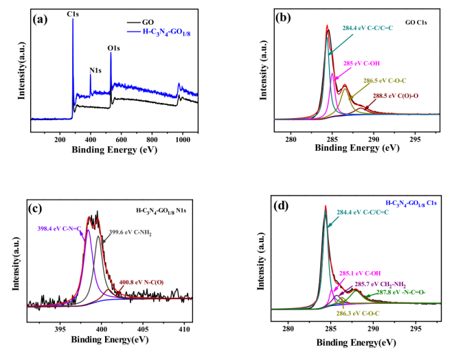 1/8的XPS譜,(b)GO和(c和d)H-C