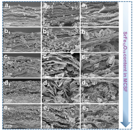 −1的高導電性和62.9 dB的優良EMI屏蔽效能,厚度僅為40 μ m。得益于強大的磁響應能力和擴展的磁耦合空間,六邊形SrFe