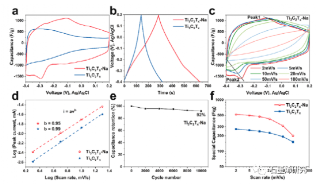 -1)的超高比電容,并且在10000次循環(huán)后仍能保持92%的容量。該研究將為MXenes的表面化學(xué)研究提供新的思路,并促進(jìn)其在多個(gè)領(lǐng)域的應(yīng)用。