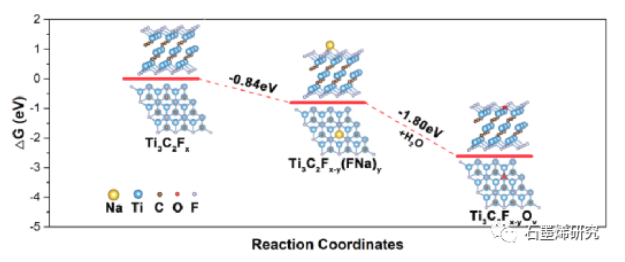 x上幾乎所有的F端基都可以在高溫下與Na金屬反應(yīng)消除,并且在后續(xù)的洗滌步驟中引入了大量的O端基。綜合表征分析和密度泛函理論(DFT)計(jì)算,闡明了其作用機(jī)理。此外,優(yōu)化后的Ti