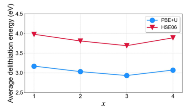 圖 7. PBE+U 和 HSE06 計算預測的 Li