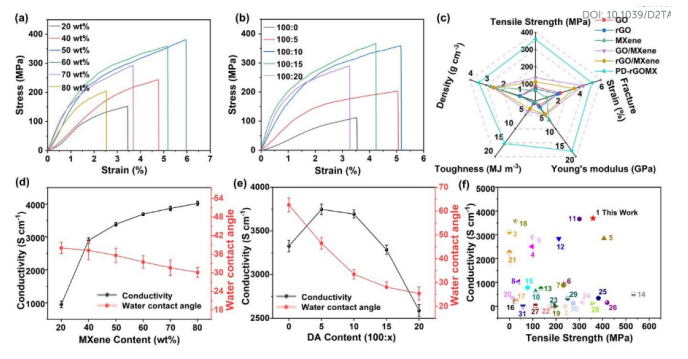 MXene作為一種新型的高導電性和親水性的濕響應材料,在收集水蒸發能方面具有無限的可能性。然而,MXene薄膜的力學和電學性能受到其結構中宏觀空洞和薄片無序堆積的影響。在這里,通過更強的共價鍵和氫鍵的層間相互作用的致密MXene薄膜,制備了一種多多巴胺處理的還原氧化石墨烯/MXene薄膜作為濕度響應驅動器。小型的濕度響應驅動器具有高電導率(3693 S cm
