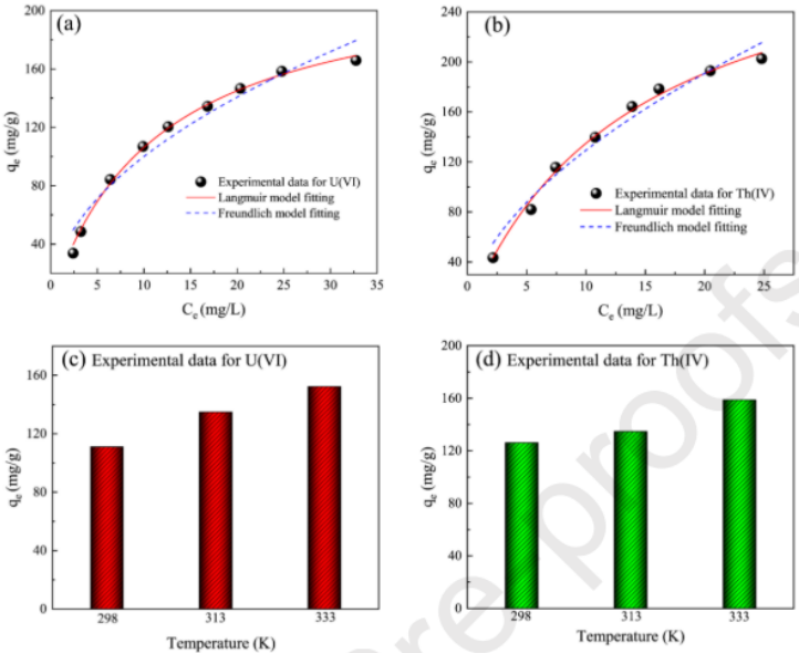 圖5 用等溫線模型模擬了U(VI)和Th(IV)在Fe
