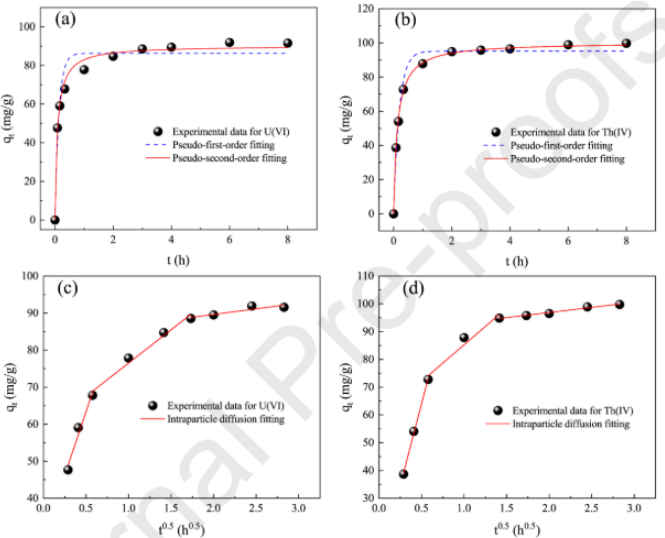 圖6. 利用動力學方程模擬了U(VI)和Th(IV)在Fe