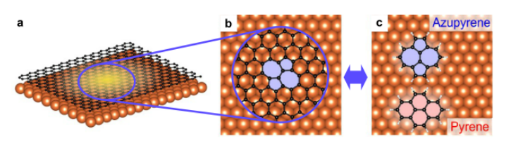 圖 1. 根據理想石墨烯晶格和嵌入缺陷的拓撲結構選擇分子模型系統 (a)。 具有拓撲缺陷的石墨烯/金屬界面(b,c)。 拓撲 S-W 石墨烯缺陷與金屬表面 (b) 的局部相互作用通過應用于嵌入缺陷和相關分子模型系統 (c) 的計算和實驗方法的組合來研究。 這些模型系統提供了對嵌入缺陷無法獲得的信息的訪問。
