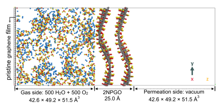 2氣體分子在雙層納米多孔氧化石墨烯膜上的分離過程。計算結果表明,H