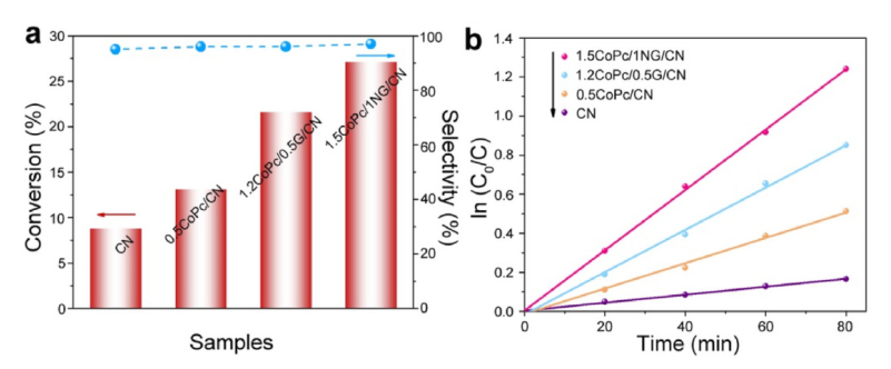 4異質結醇選擇性有氧氧化光活性的關鍵因素。在此,我們成功地制備了N-摻雜石墨烯調制的CoPc/g-C