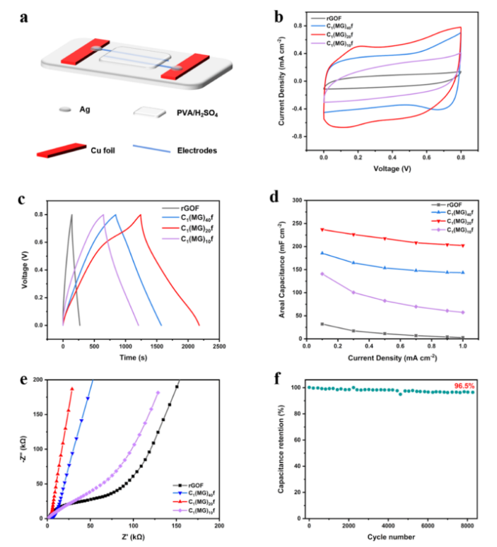圖5。(a) CMG FSSCs和其他已報道的碳基固態(tài)FSSCs的Ragone圖。(b) C1(MG)