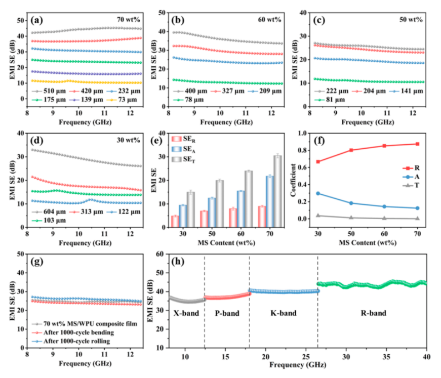 圖4. 圖中給出了MS/WPU復合膜的電磁干擾屏蔽機理,以達到較高的電磁干擾屏蔽性能。