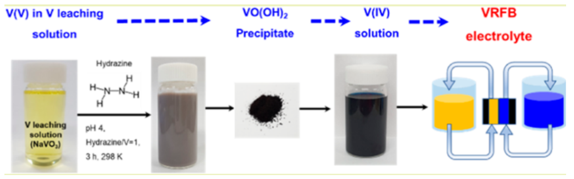 5 會導(dǎo)致顯著的環(huán)境影響,并且需要復(fù)雜的順序還原過程來制備 V 電解液。 為了可持續(xù)生產(chǎn) V 電解液,我們通過使用肼 (N