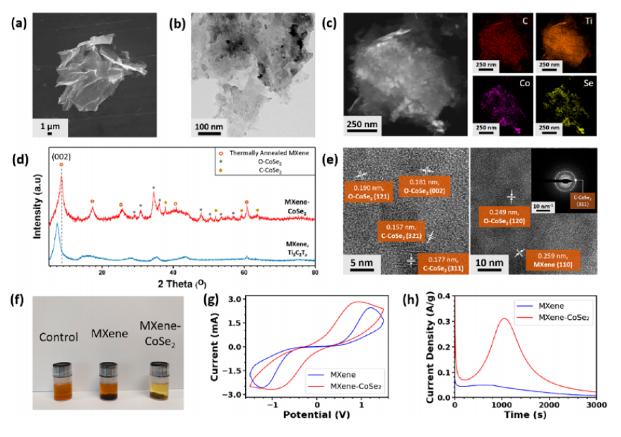 2納米片進行鋰多硫化物吸附試驗。(g)使用MXene和MXene- CoSe