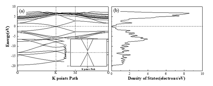 圖9. (a)石墨烯的能帶結(jié)構(gòu)(圖示在費米能級放大),(b)石墨烯的態(tài)密度。