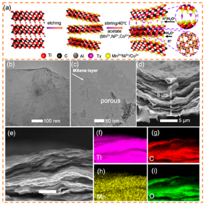 x−Mn的SEM圖像;(f−i) Ti、C、Mn和O的Ti