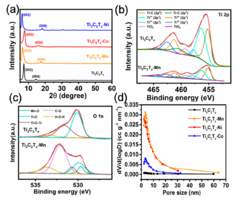 MXenes通常用于能量存儲應(yīng)用。然而,大的納米片和重新填充不利于離子擴散,從而限制了其速率能力。在這里,一種制備柔性多孔MXene−M超級電容器電極的策略可以同時擴大層間的層間距并在層中形成孔。結(jié)果表明,Ti