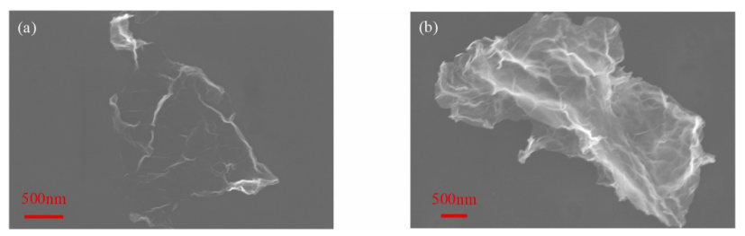 Fig5. (a) rGO 和 (b) PDA-rGO 的 SEM 圖像。