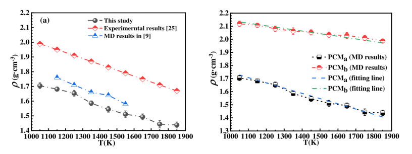 圖3. 仿真系統密度,(a) PCMa, (b) PCMa與PCMb的比較。