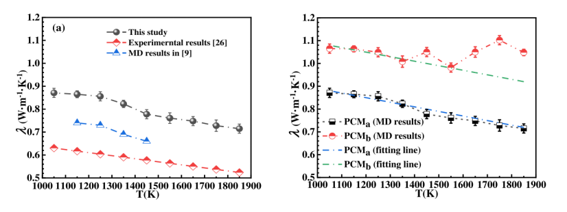 圖9. 模擬系統熱導率,(a) PCMa, (b) PCMa與PCMb的比較。