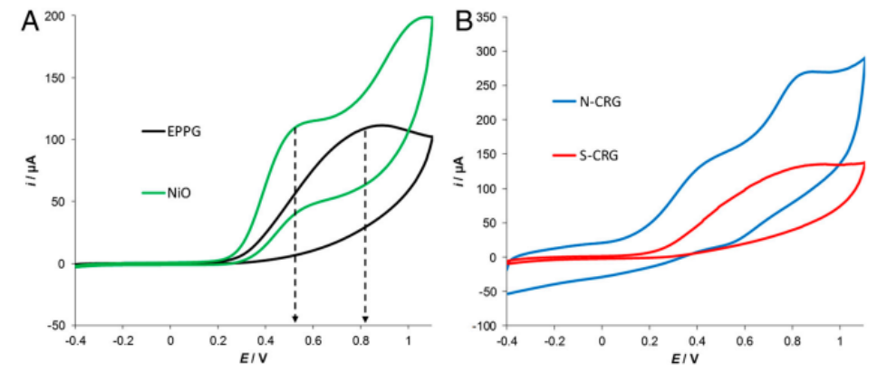 圖4. 在5mM肼存在下記錄循環(huán)伏安圖。