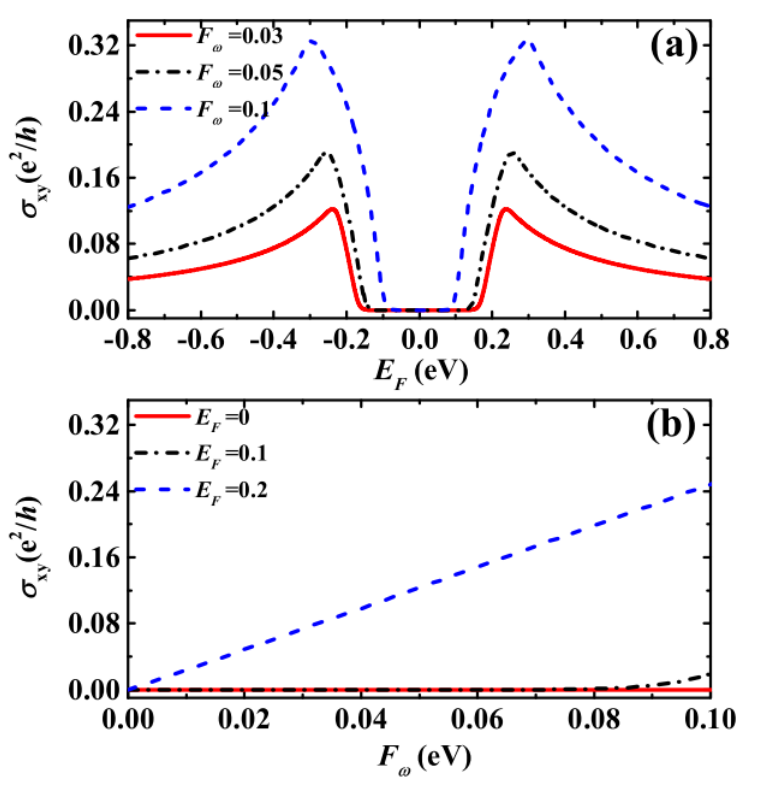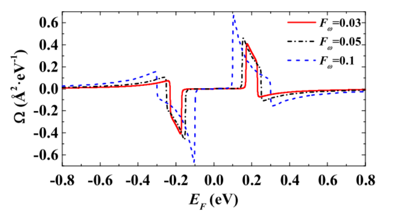 基于Kekulé-O (Kek-O)扭曲石墨烯的成功制備,我們從理論上研究了Kek-O石墨烯在非共振圓偏振光照射下的異常Hall效應和Nernst效應。采用Floquet理論,推導了Kek-O石墨烯在光照射下的有效哈密頓量。我們發(fā)現(xiàn)光照射可以解除谷簡并,并誘發(fā)純粹的異常Hall和Nernst電流。Hall和Nernst電導率可以通過非共振圓偏振光進行切換。作為費米能量的函數(shù),Berry曲率為奇函數(shù)。當費米能量與低導帶或價帶邊緣重合時,Berry曲率、異常Hall和Nernst電導率達到最大值。在一定的費米能量下,反常Hall電導率隨光照參數(shù)的增加而線性增加,而Nernst電導率則先增大后減小。我們的研究結果對基于Kek-O石墨烯的光電器件的設計具有指導意義。