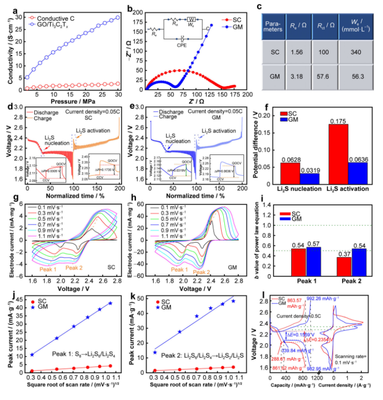 鋰硫電池具有較高的理論能量密度,有望成為下一代能源存儲的候選產品。然而,S絕緣和聚硫鋰中間體的穿梭效應極大地阻礙了其實際應用。本文設計了一種三維多孔氧化石墨烯(GO)/MXene (Ti