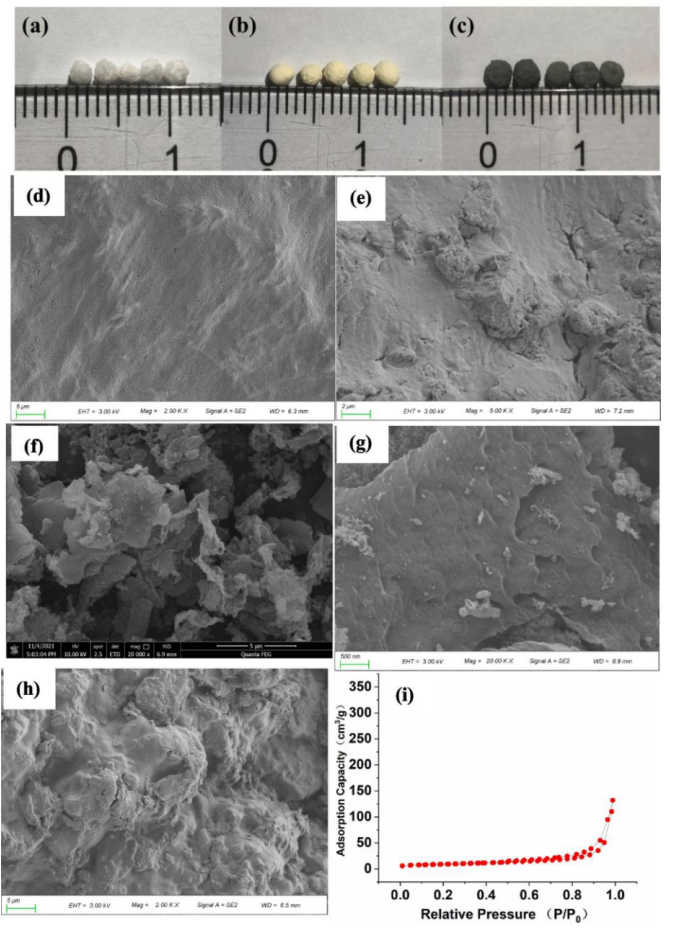 圖1. SA (a)、CN/SA (b)和CN/GO/SA (c)樣品的外觀和尺寸。SA(d);CN/SA (e);CN/GO (f);CN/GO/SA (g)的SEM圖像。
