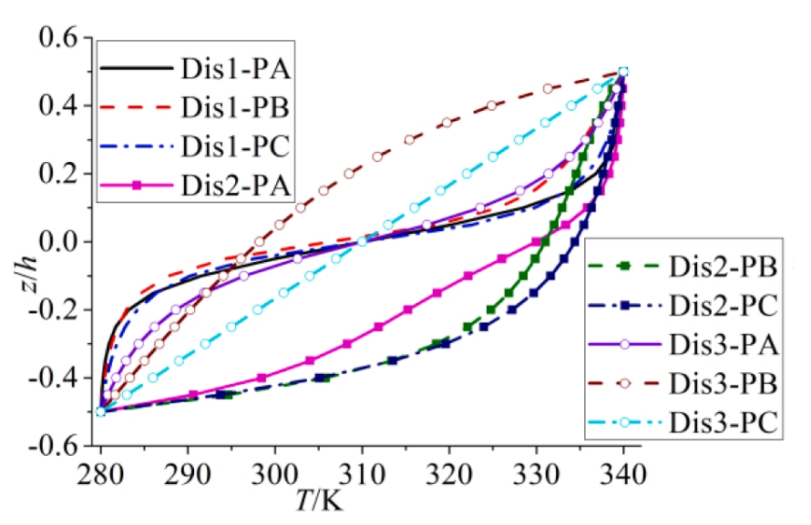 圖3. 與文獻(xiàn)[49]比較的z-方向溫度分布。