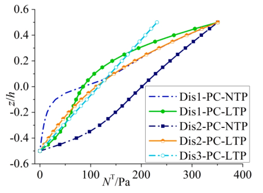 功能梯度石墨烯片增強(qiáng)(FG-GPL)多孔材料是一種先進(jìn)、可設(shè)計、輕量化、高強(qiáng)度的復(fù)合材料,有望在運(yùn)載火箭、航天飛機(jī)和高超聲速飛行器中作為綜合熱防護(hù)和承重結(jié)構(gòu)。熱振動分析可確保在動態(tài)熱負(fù)荷環(huán)境下的服務(wù)安全。基于微力學(xué)模型和Timoshenko梁(TBT)理論,建立了FG-GPL多孔梁在非線性溫度分布下的自由振動分析模型。首先,假設(shè)了沿梁厚度方向的三種功能梯度孔隙度分布和石墨烯片分散模式。采用高斯隨機(jī)場和Halpin-Tsai模型計算材料的彈性模量、泊松比和密度。其次,通過求解一維熱傳導(dǎo)方程,建立了考慮孔隙度和石墨烯薄片影響的非線性溫度分布;第三,利用TBT和Hamilton原理得到了梁的熱振動控制方程。利用傳遞函數(shù)法求解控制方程,計算了不同孔隙度分布和石墨烯片分散模式組合的頻率。最后,對實(shí)驗(yàn)結(jié)果進(jìn)行驗(yàn)證,并分析了溫度分布、石墨烯薄片重量分?jǐn)?shù)、孔隙率系數(shù)和熱梯度等參數(shù)對基頻的影響。與線性溫度分布相比,對稱分布孔隙與GPL梁在非線性溫度分布下的頻率變化不大,而非對稱組合時情況不同。
