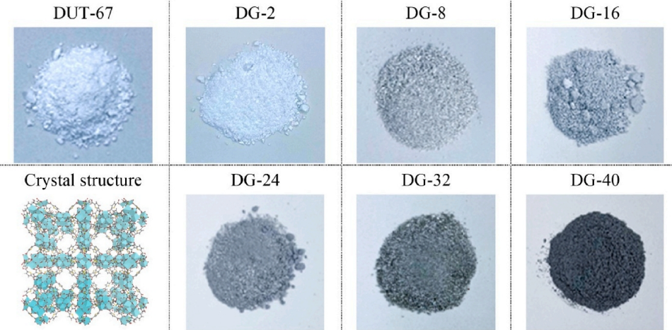 圖1. 具有不同GO含量的DUT-67和DUT-67/GO復合材料的圖片。