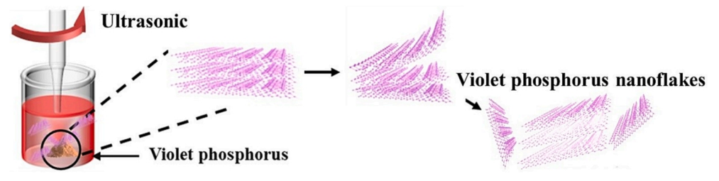 圖1. 通過(guò)尖端超聲處理剝離的VP納米片示意圖。