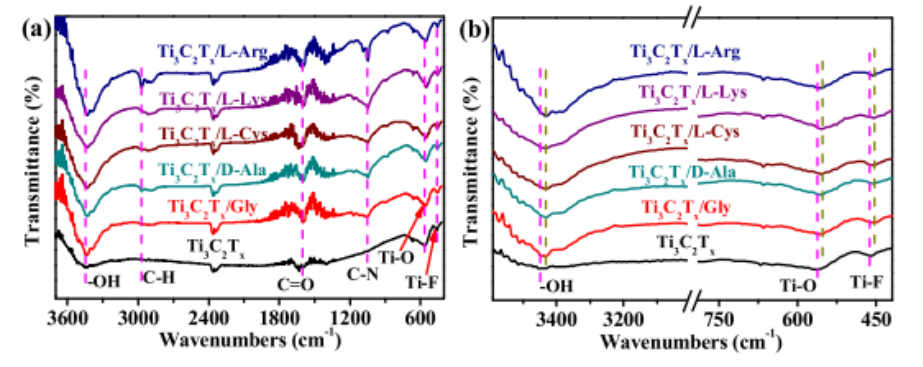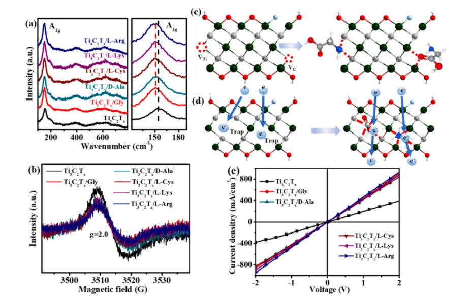 x中帶負電荷的Ti空位,而氨基酸的-COOH鈍化帶正電荷的C空位,從而提高Ti