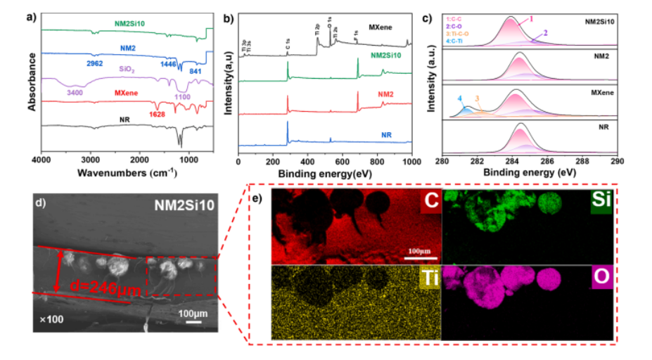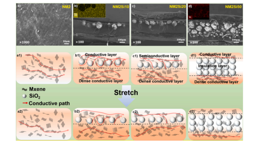 2)薄膜,具有優異的電導率,靈敏度和可靠性。在NR/MXene復合材料中引入SiO