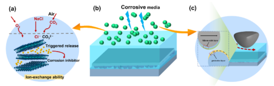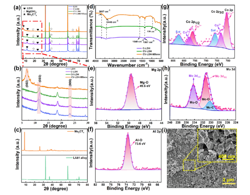 二維納米材料已經證明了其在保護金屬免受腐蝕和磨損方面的潛在應用。然而,在納米復合涂層中,二維納米片的容易團聚和復雜的功能化仍然是一個挑戰。本文采用靜電協同組裝策略合成了共摻雜的MgAl-V