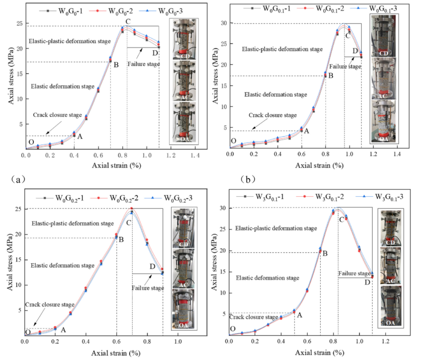 圖7. 靜載下混凝土應(yīng)力-應(yīng)變曲線:(a) W