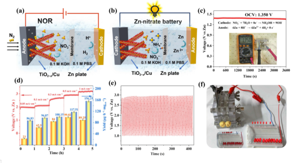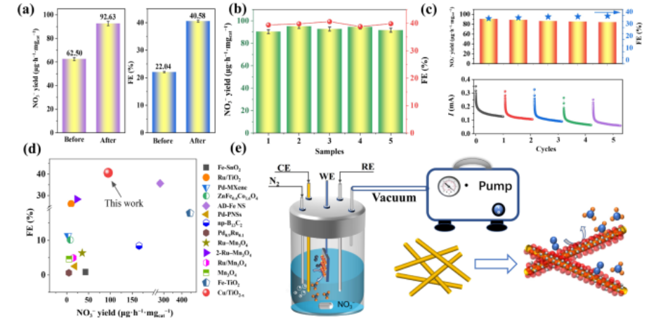 2−x納米顆粒錨固銅納米線(Cu-NWs)電極,實(shí)現(xiàn)了高效的電催化氮氧化,其NO
