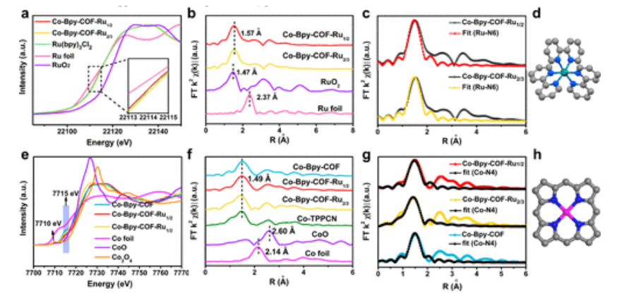 2/3、Co 箔、CoO 和 Co-TPPCN 的 EXAFS 光譜的 Co K 邊。(g) Co-Bpy-COF、Co-Bpy-COF-Ru
