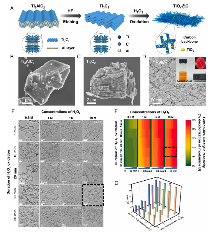 2 MXene 作為模板構(gòu)建了基于氧化鈦的類芬頓催化劑。理論計算表明,剝離的Ti