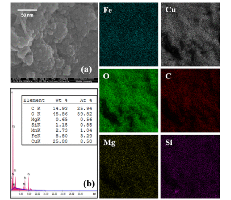 4納米顆粒,并將其固定在海泡石纖維和氧化石墨烯片上,通過簡單的一鍋法制備了CuFe