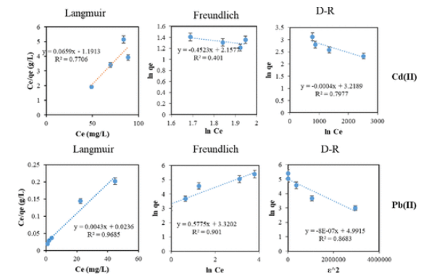 圖8. Cd(II)和Pb(II)吸附等溫線。