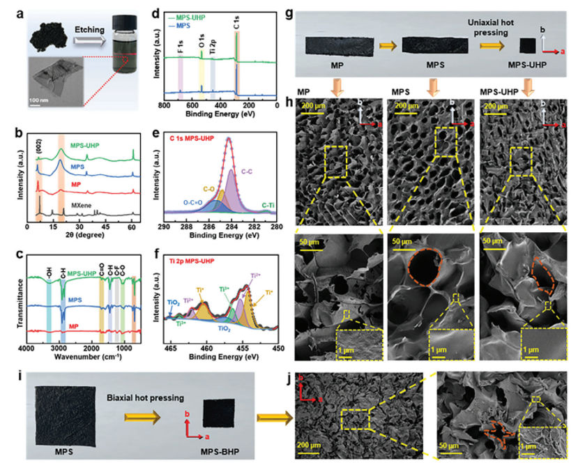 圖1. 可拉伸熱壓MXene基氣凝膠的制備及應用。