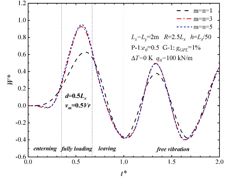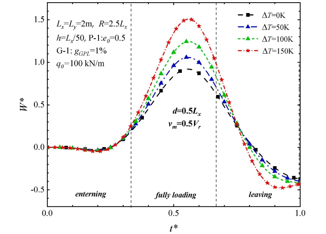 北京工業(yè)大學材料與制造學部、機械結(jié)構(gòu)非線性振動與強度北京市重點實驗室、廣西大學力學系Wei Zhang等--移動分布載荷作用下多孔石墨烯片增強圓柱板的非線性瞬態(tài)熱機械響應