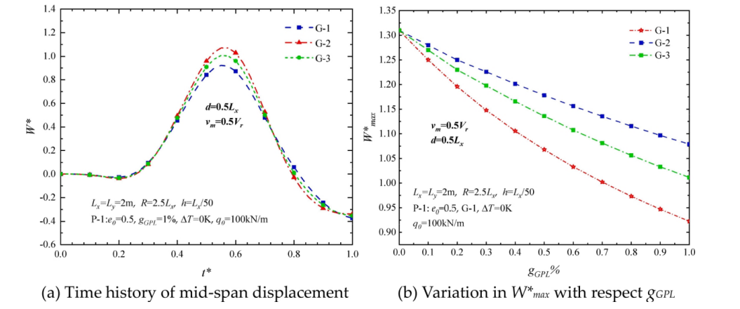 相關研究成果由北京工業(yè)大學材料與制造學部、機械結(jié)構(gòu)非線性振動與強度北京市重點實驗室、廣西大學力學系Wei Zhang等人于2023年發(fā)表在Thin-Walled Structures (https://doi.org/10.1016/j.tws.2023.111180 )上。原文:Nonlinear transient thermo-mechanical responses of porous graphene platelet-reinforced cylindrical panels under moving distributed loads