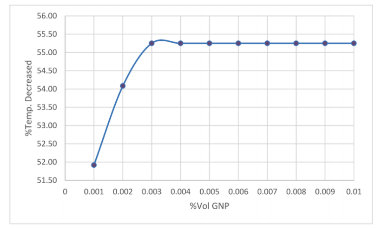 電池技術是向零排放交通轉變的主要推動力。然而,該技術廣泛應用的一個主要障礙是需要將電池的溫度保持在27℃的標準溫度。傳統的方法是乙二醇和水的混合物通過電池組循環冷卻,但這種方法是不夠的。相比之下,使用石墨烯納米片(GNPs)可以改善傳熱,降低電池單元的溫升。在本研究中,使用含有不同濃度GNPs(從0.001 vol%到0.01 vol%)的冷卻劑對定制電池組進行了模擬,以評估其降低工作溫度的有效性。采用拉格朗日方法對耦合歐拉連續相流體的離散相粒子進行了跟蹤。結果表明,純EG/Water冷卻劑使系統的峰值溫度降低了16.67%(60℃ - 50℃),當加入0.03 vol% GNP時,峰值溫度進一步降低到26.85℃(降低55.25%)。與純混合物相比,僅添加0.001 vol%的GNPs,模型中峰值溫度的差異從10℃增加到31.15℃。更高的導熱系數,更大的表面積和更高的粒子比熱容均歸因于這種冷卻性能的增強。