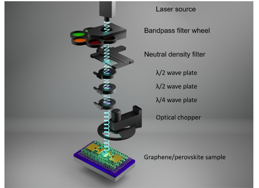 圖4. 用于石墨烯/鈣鈦礦器件偏振光電流測量的光路的排列和幾何形狀。