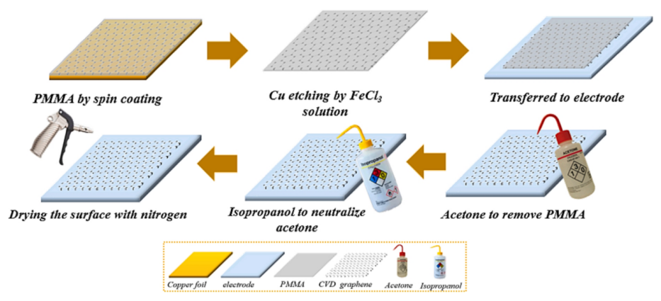 流程圖1. 使用簡易濕法轉移工藝將BLG從銅箔轉移到FTO基板的示意圖。