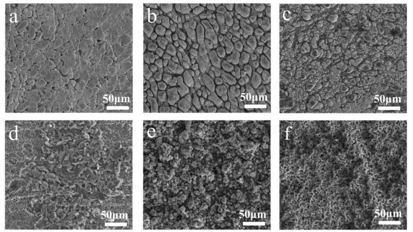 采用無氰電刷鍍方法在銅基體上成功制備了銀-石墨烯(Ag-G)復合鍍層。當硫化溫度從-70℃升高到45℃時,在石墨烯含量為2 g L-1的復合溶液中制備的Ag-G復合鍍層的硫化程度逐漸增大到最大值。當硫化溫度提高到90℃時,Ag-G復合鍍層的硫化程度較45℃時略有下降。Ag- G復合涂層在極端硫化溫度下具有優異的抵抗硫化、耐磨損和耐腐蝕性,由于石墨烯的摻入,其性能優于純Ag涂層。硫化溫度與Na2S溶液中O2含量的相互作用決定了耐硫化性能。該工作通過采用無氰復合電解質,為不同極端環境下的實際應用提供了新型高性能銀涂層方法。